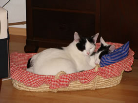 Ich wollte mich nur mal kurz melden und sagen, dass hier mit Harlekin und Lisa alles gut läuft. Anfang nächsten Monats werden beide kastriert und dann schauen wir mal weiter.