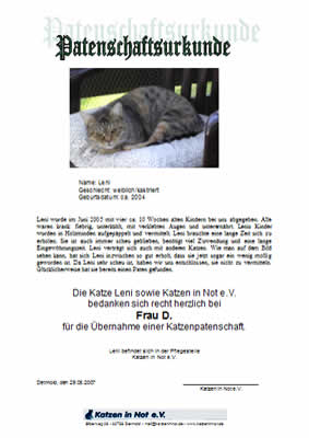 Eine Patenschaft übernehmen Unsere Patenkatzen |